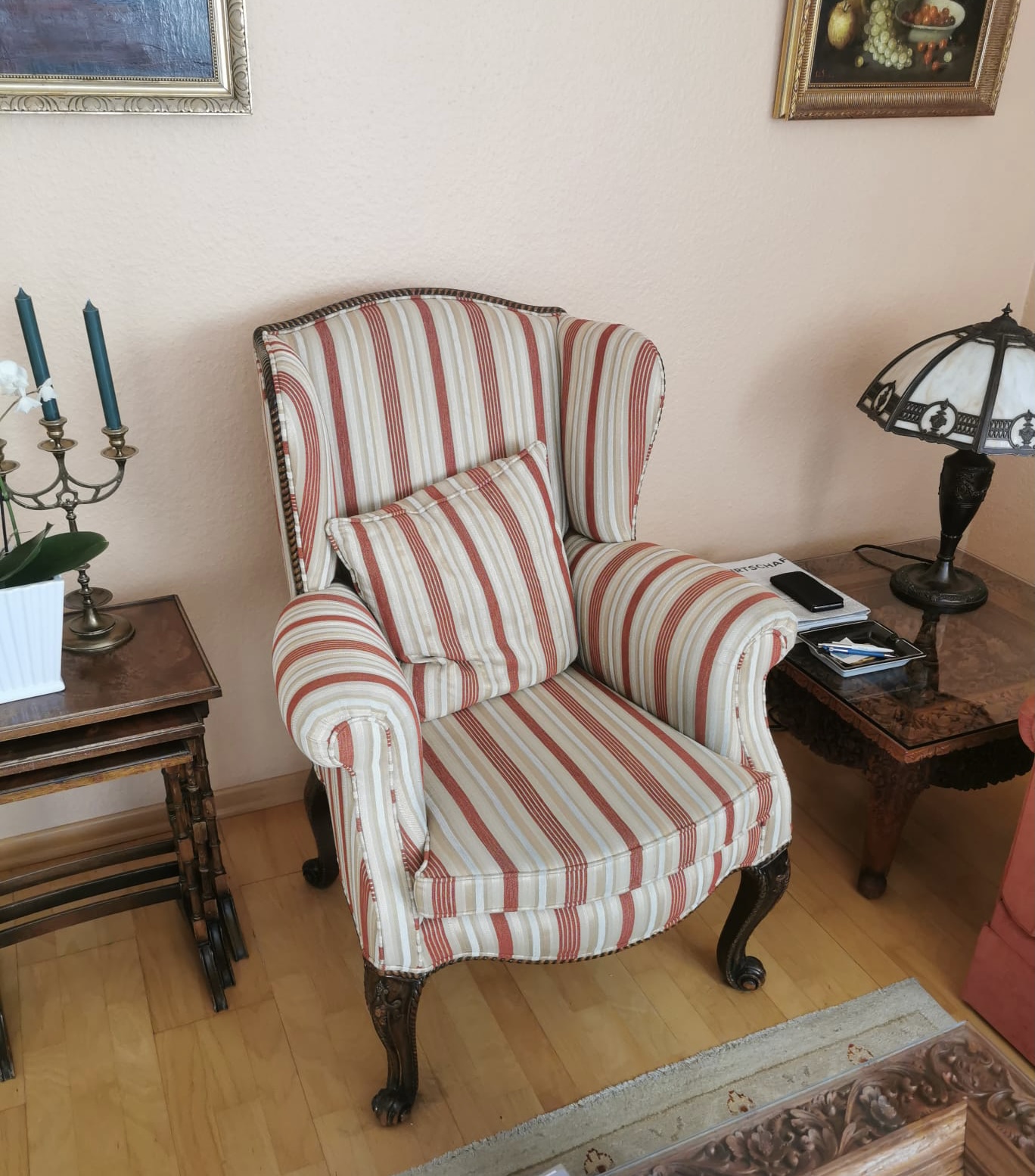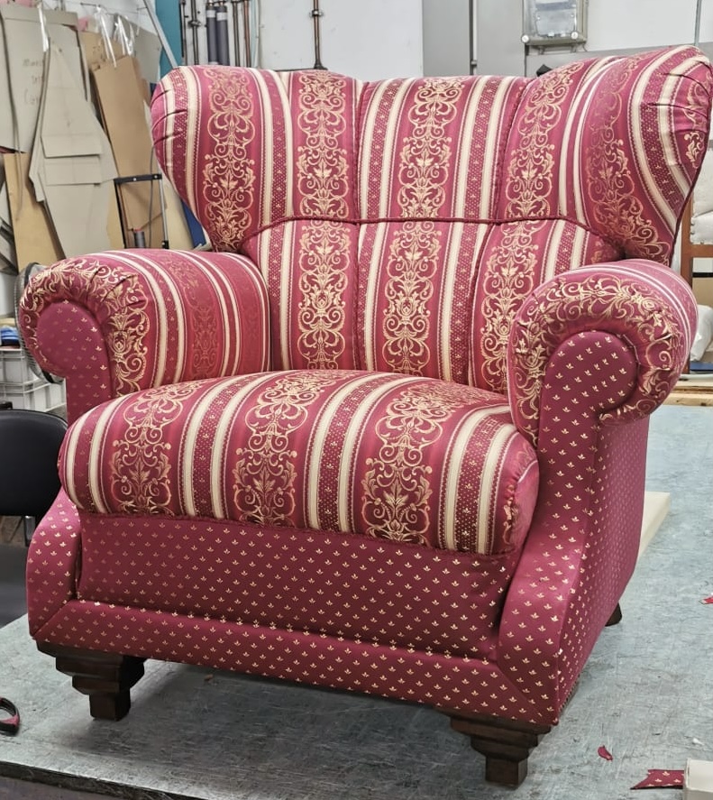 Klassisch trifft auf die moderne… dieser Stoff rückt den Sessel in den Vordergrund