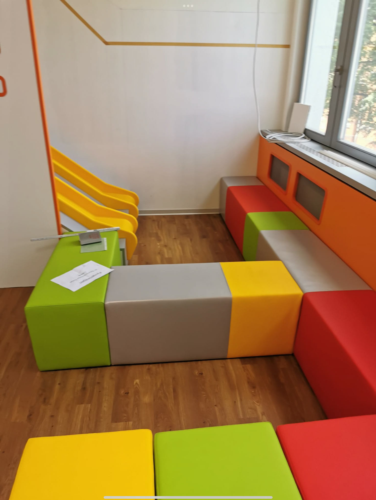 Zusammnenarbeit mit unserem Ladenbauer, hier eine 5 Meter Sitzbank